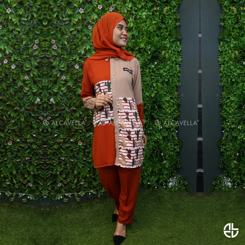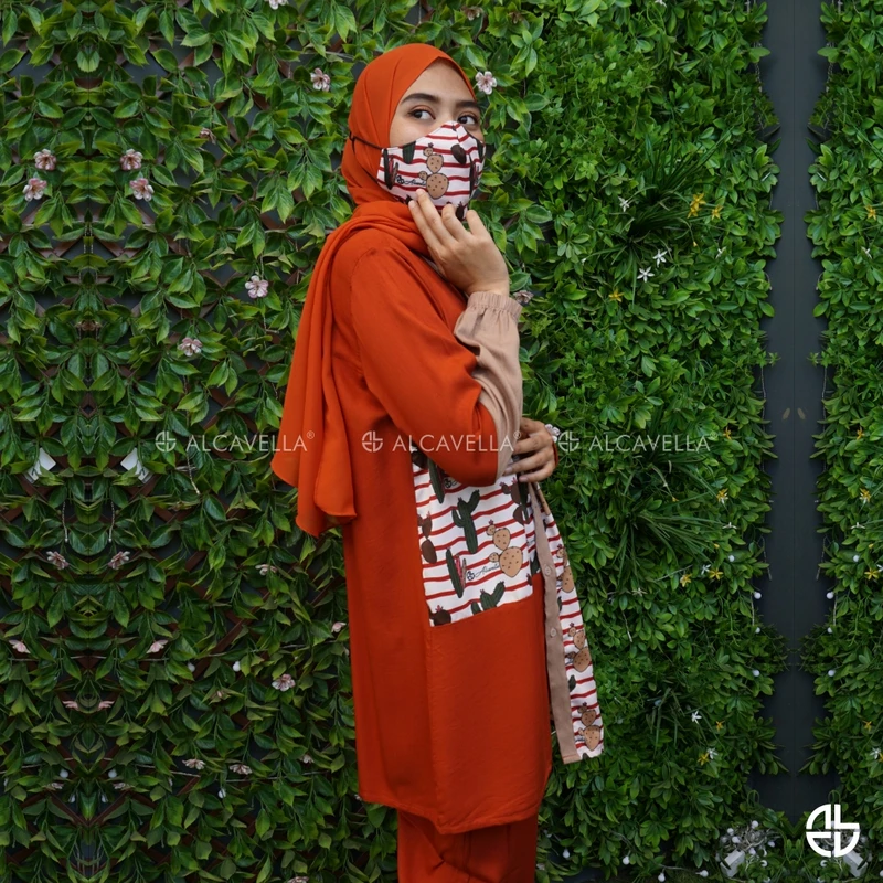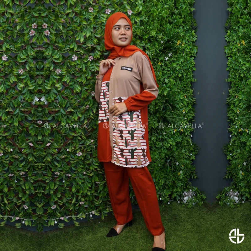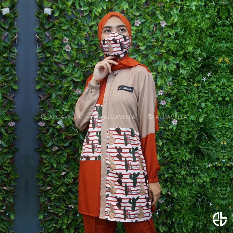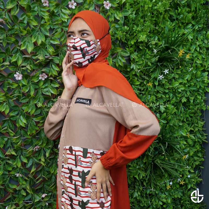 Alcavella Daily Wear Olivia material premium cotton twill emang cakep banget buat kasih nuansa vintage look, dan yang paling unik adalah aksen tangan, style di bagian badan, perpaduan warna yang exactly dan collection ini memakai pola jahitan standard butik dengan motif kaktus menambah kesan elegan, dengan karet dibagian tangan sehingga nyaman untuk berwudhu.