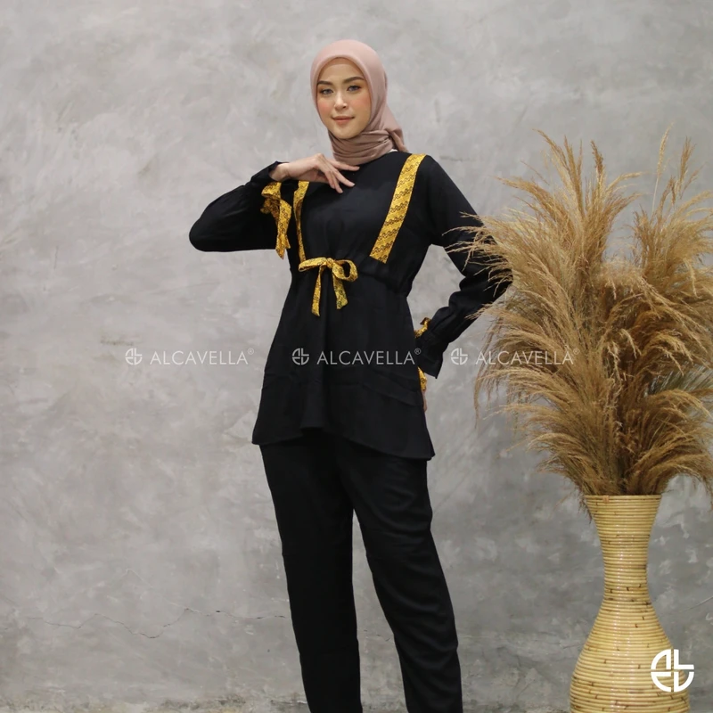 Alcavella Daily wear Style Saffana edisi kali ini masih sama dengan edisi sebelumnya. Dengan bahan Premium cotton twill, Karakter material cotton twill ini super lembut, flowy ditambah aksen printing logo Alcavella yang manis di bagian badan dan tali di bagian tangan, celana Alcavella daily wear yang memudahkan kamu beraktivitas.