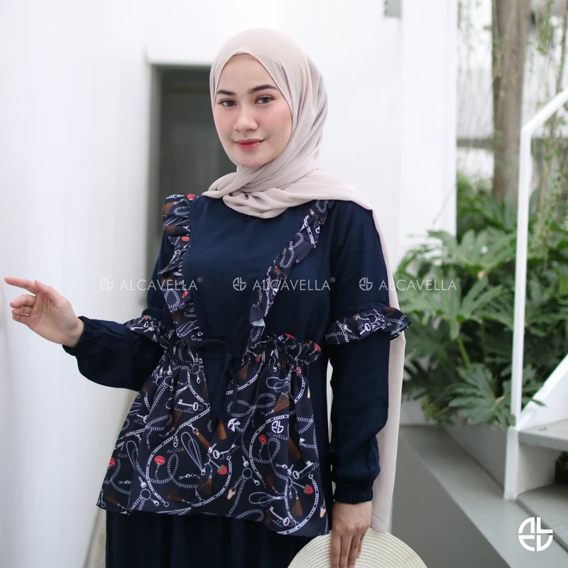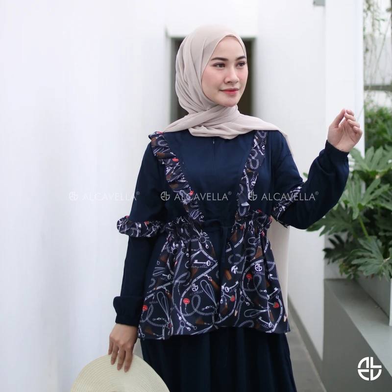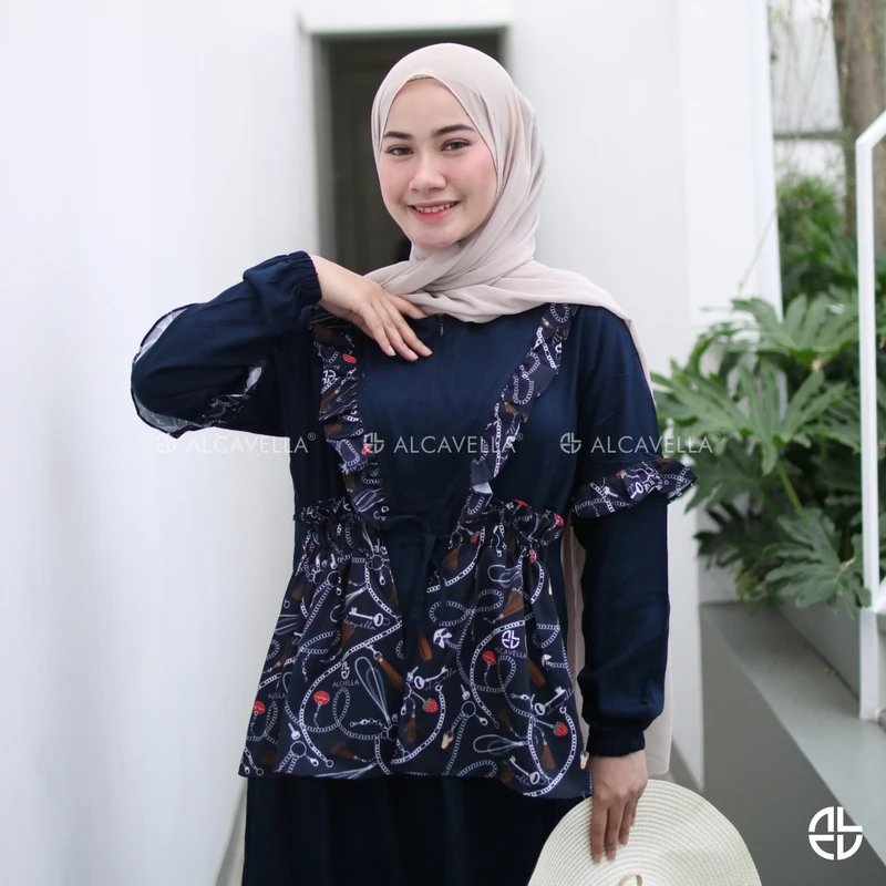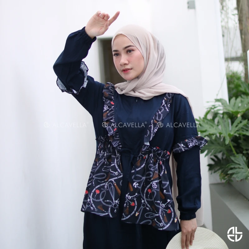 Alcavella Home Dress Nadira dengan motif tali rantai dan terdapat logo Alcavella yang akan memberikan look semakin goodmood. Material cotton twill Jalinan serat yang berbentuk diagonal ini memberikan kesan eksklusif pada baju yang dibuat dengan bahan ini. Terdapat aksen ruffle di bagian tangan, busui friendly, wudhu friendly, tali kerut dan saku praktis.