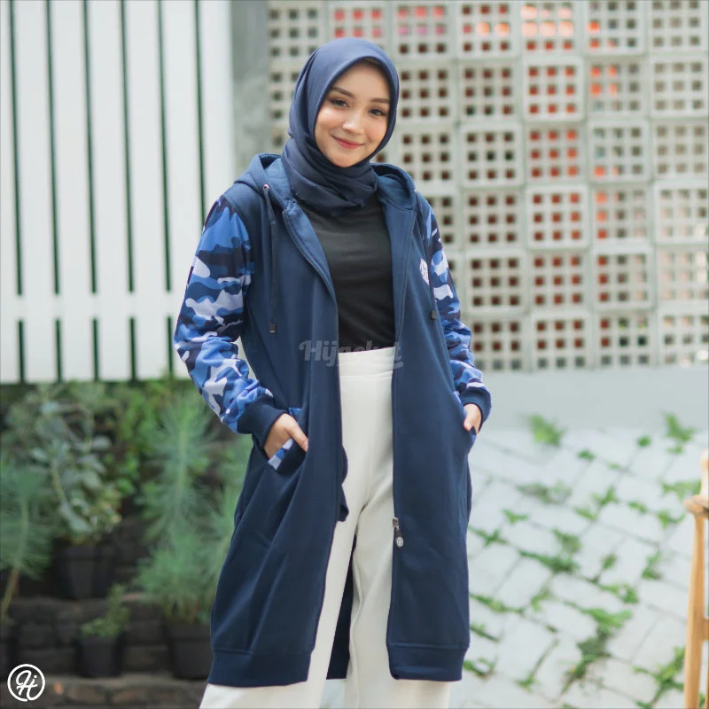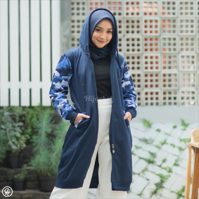 Model eksklusif terbaru yang dirancang dengan kombinasi lebih berani bergaya militer camouflage & fashion hijaber yang membuat hijabmu lebih nge-blend secara sempurna dengan Hijacket