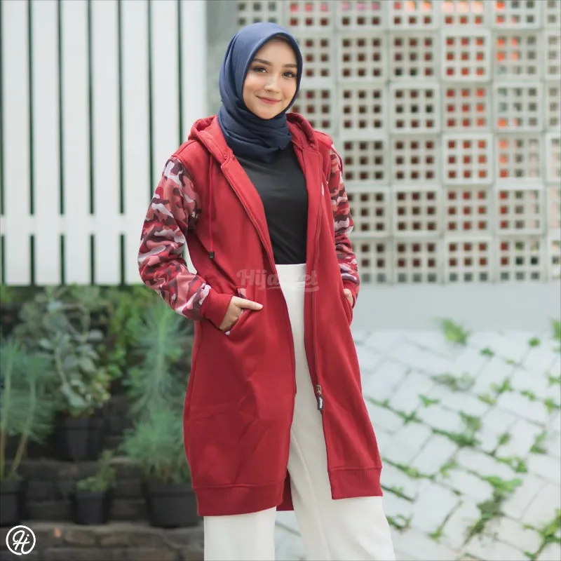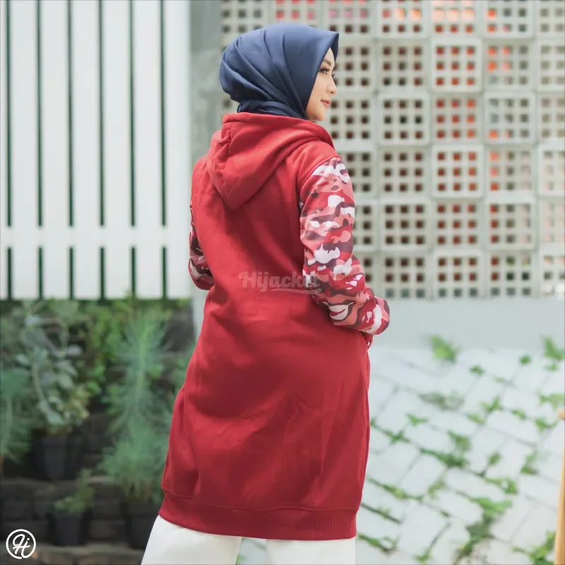 Model eksklusif terbaru yang dirancang dengan kombinasi lebih berani bergaya militer camouflage & fashion hijaber yang membuat hijabmu lebih nge-blend secara sempurna dengan Hijacket