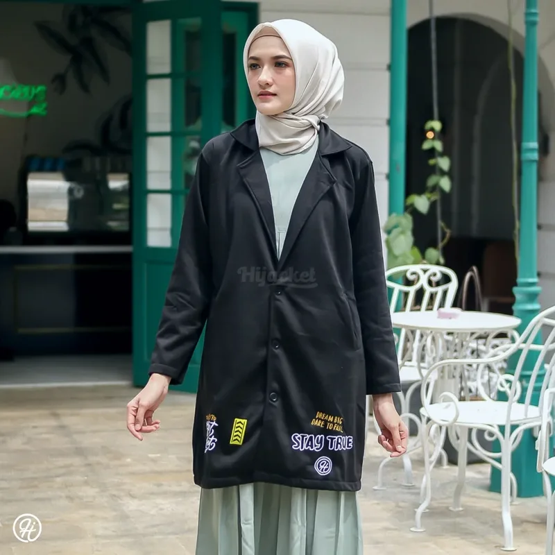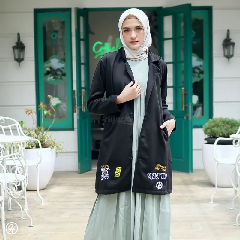 Hijacket Elma Original merupakan seri hijacket gaya modern yang tak lekang oleh waktu, hijacket elma dilengkapi dengan bentuk feminin, saku yang praktis dan pas serbaguna dan dengan tombol pearlescent vintage-chic. Sangat cocok untuk hijaber yang suka tampil formal dan berstyle jas.