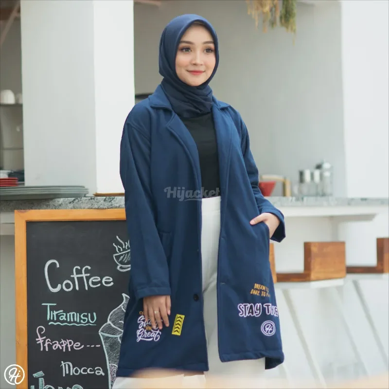 Hijacket Elma Original merupakan seri hijacket gaya modern yang tak lekang oleh waktu, hijacket elma dilengkapi dengan bentuk feminin, saku yang praktis dan pas serbaguna dan dengan tombol pearlescent vintage-chic. Sangat cocok untuk hijaber yang suka tampil formal dan berstyle jas.