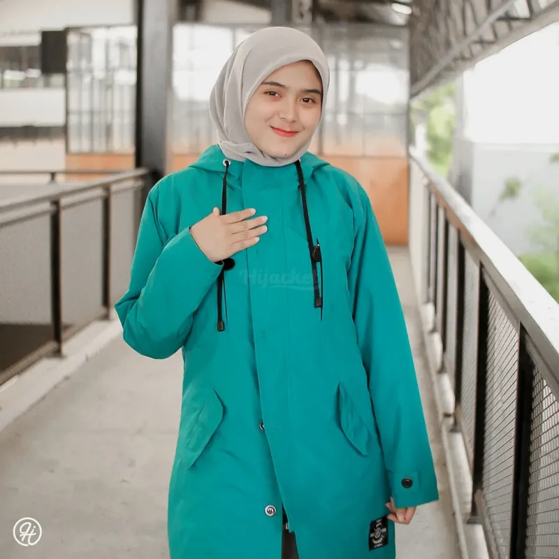 Hijacket Ixora Series, adventuring-inspired layer for Hijaber with a pastel color-blocked design on lightweight fabric for an iconic look 100% Polyfiber Imported, 75% Waterproof & Windproof, Full Dourmill Dacron, Pocket Inside.