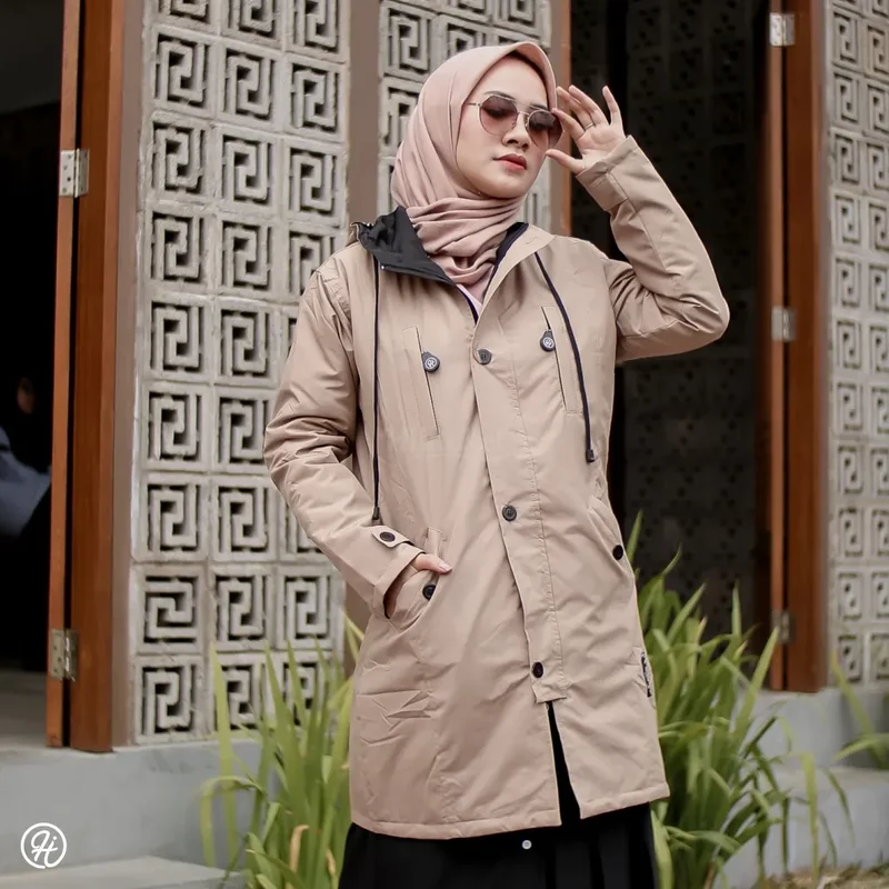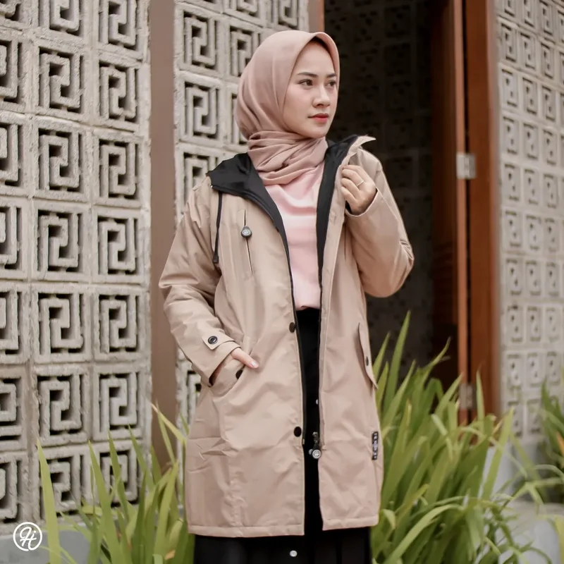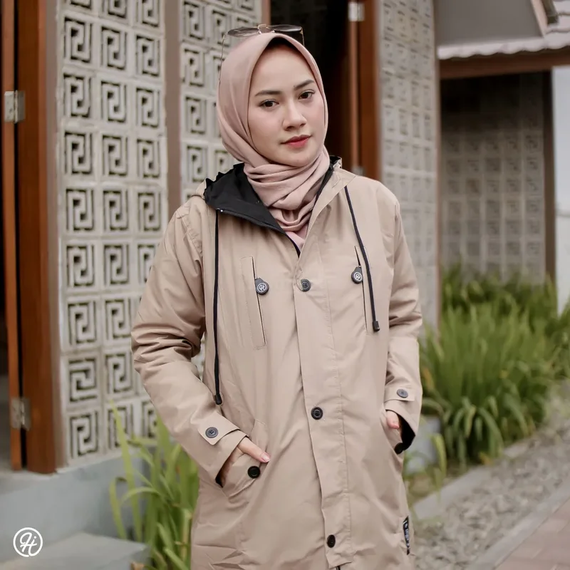Hijacket Ixora Series, adventuring-inspired layer for Hijaber with a pastel color-blocked design on lightweight fabric for an iconic look 100% Polyfiber Imported, 75% Waterproof & Windproof, Full Dourmill Dacron, Pocket Inside.