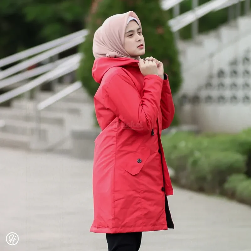 Hijacket Ixora Series, adventuring-inspired layer for Hijaber with a pastel color-blocked design on lightweight fabric for an iconic look 100% Polyfiber Imported, 75% Waterproof & Windproof, Full Dourmill Dacron, Pocket Inside.