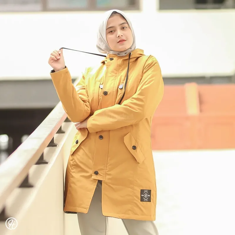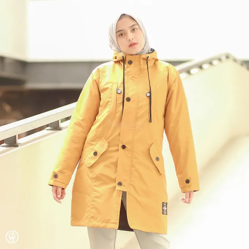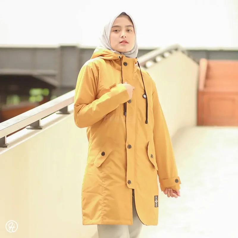 Hijacket Ixora Series, adventuring-inspired layer for Hijaber with a pastel color-blocked design on lightweight fabric for an iconic look 100% Polyfiber Imported, 75% Waterproof & Windproof, Full Dourmill Dacron, Pocket Inside.