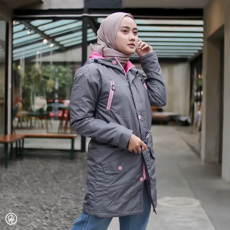 Hijacket MONTIX Series, adventuring-inspired layer for Hijaber with a color-blocked design on lightweight fabric for an iconic look 100% Polyfiber Imported, 75% Waterproof & Windproof, Full Dourmill Dacron, Pocket Inside.