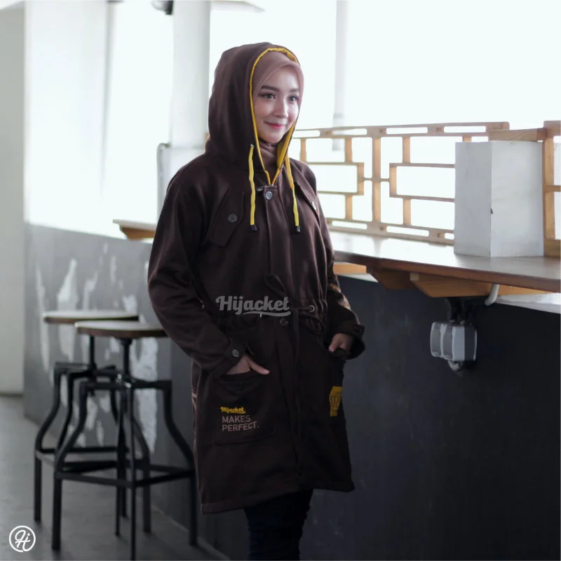 Hijacket Vendulum is jacket for Hijaber, high quality, stylish, and trendy, which is commonly wore by muslim woman nowadays. Completed by pockets on both side of it’s belly, with qualified zipper, hoodie, button and waist tie fastening, this premium high quality jacket would give you identity as an urban muslim women as well.