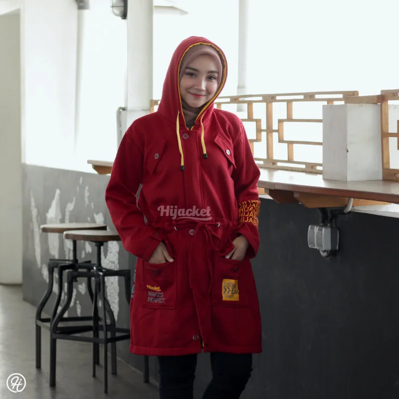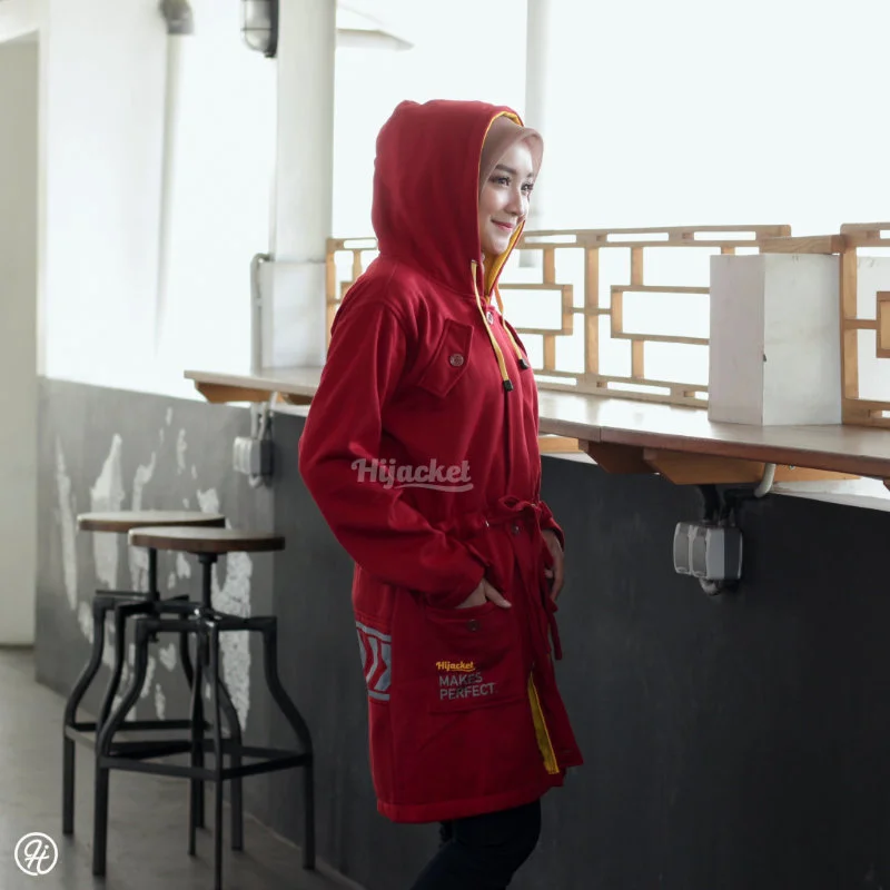 Hijacket Vendulum is jacket for Hijaber, high quality, stylish, and trendy, which is commonly wore by muslim woman nowadays. Completed by pockets on both side of it’s belly, with qualified zipper, hoodie, button and waist tie fastening, this premium high quality jacket would give you identity as an urban muslim women as well.